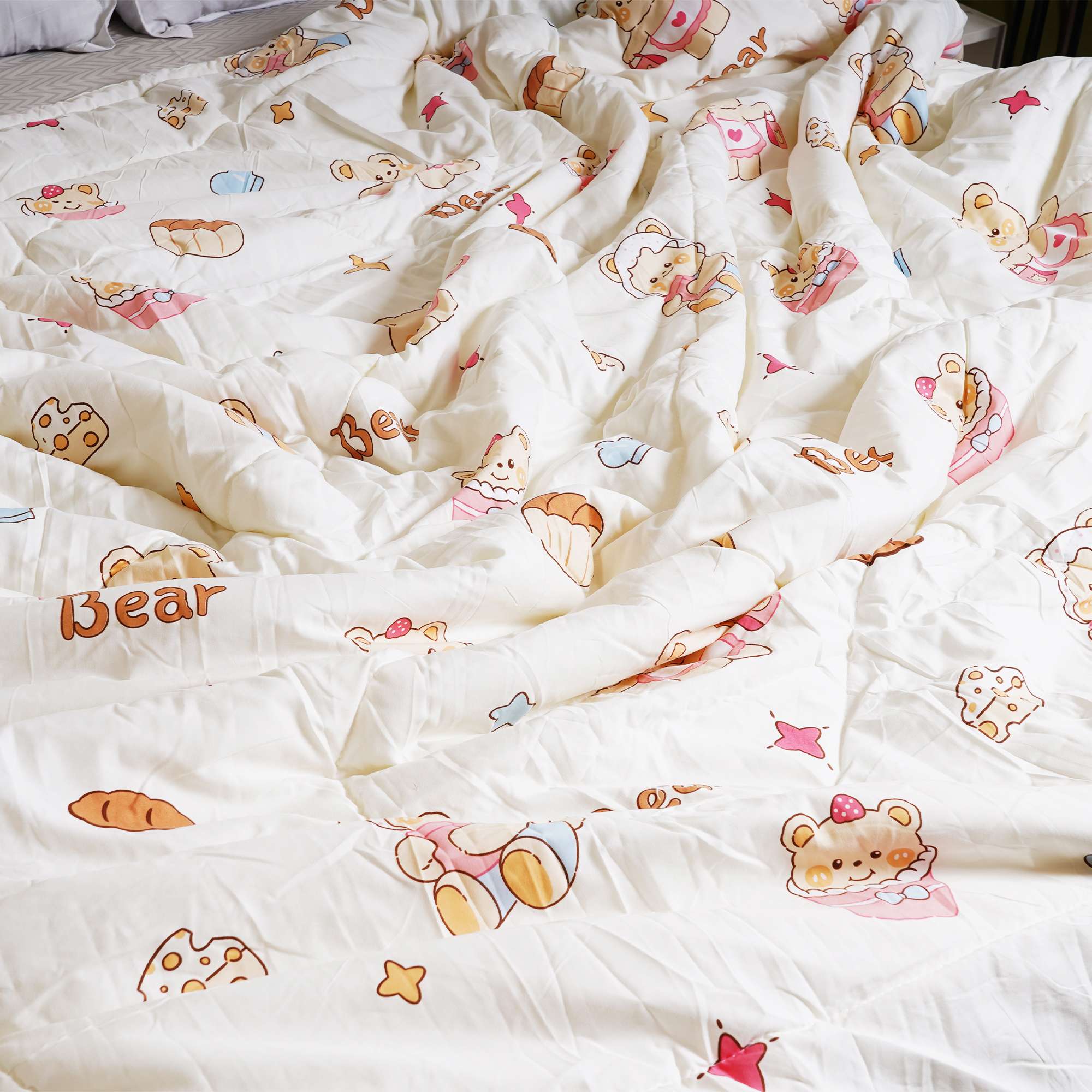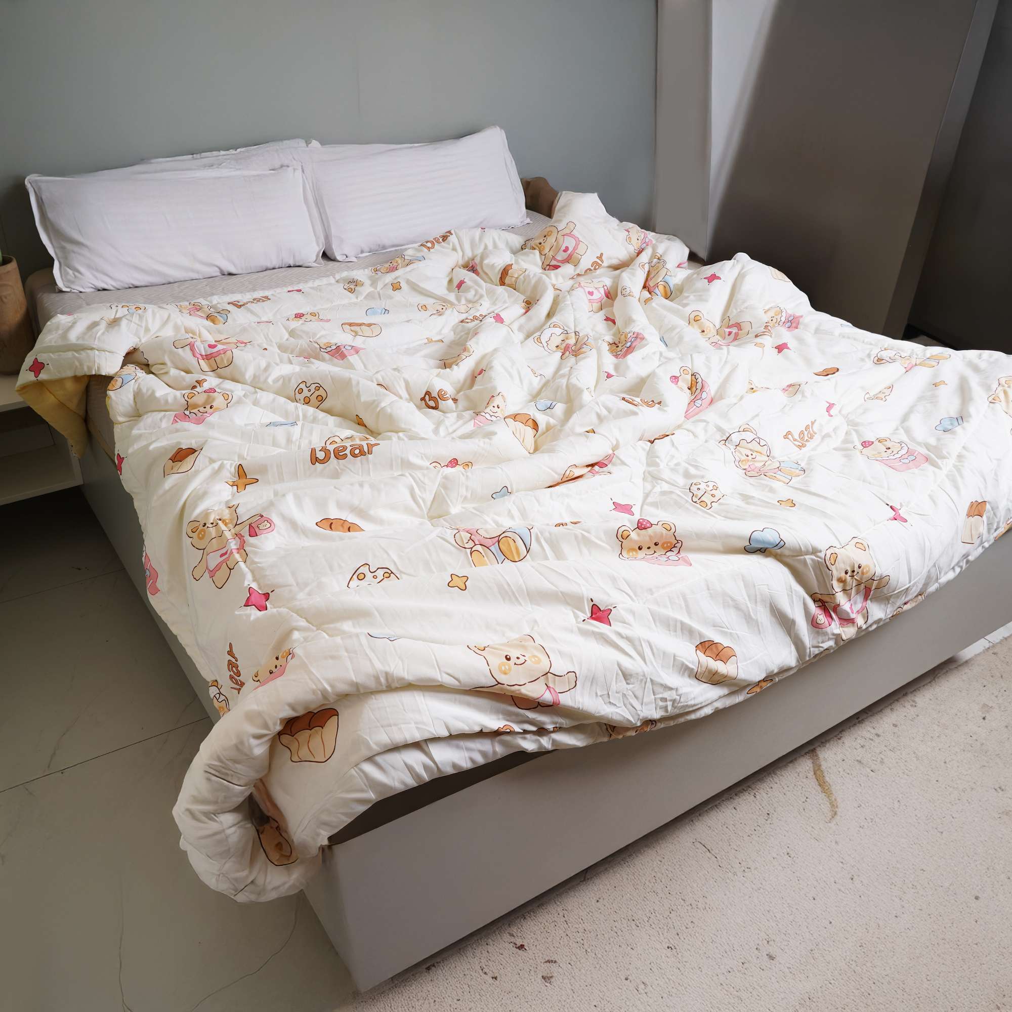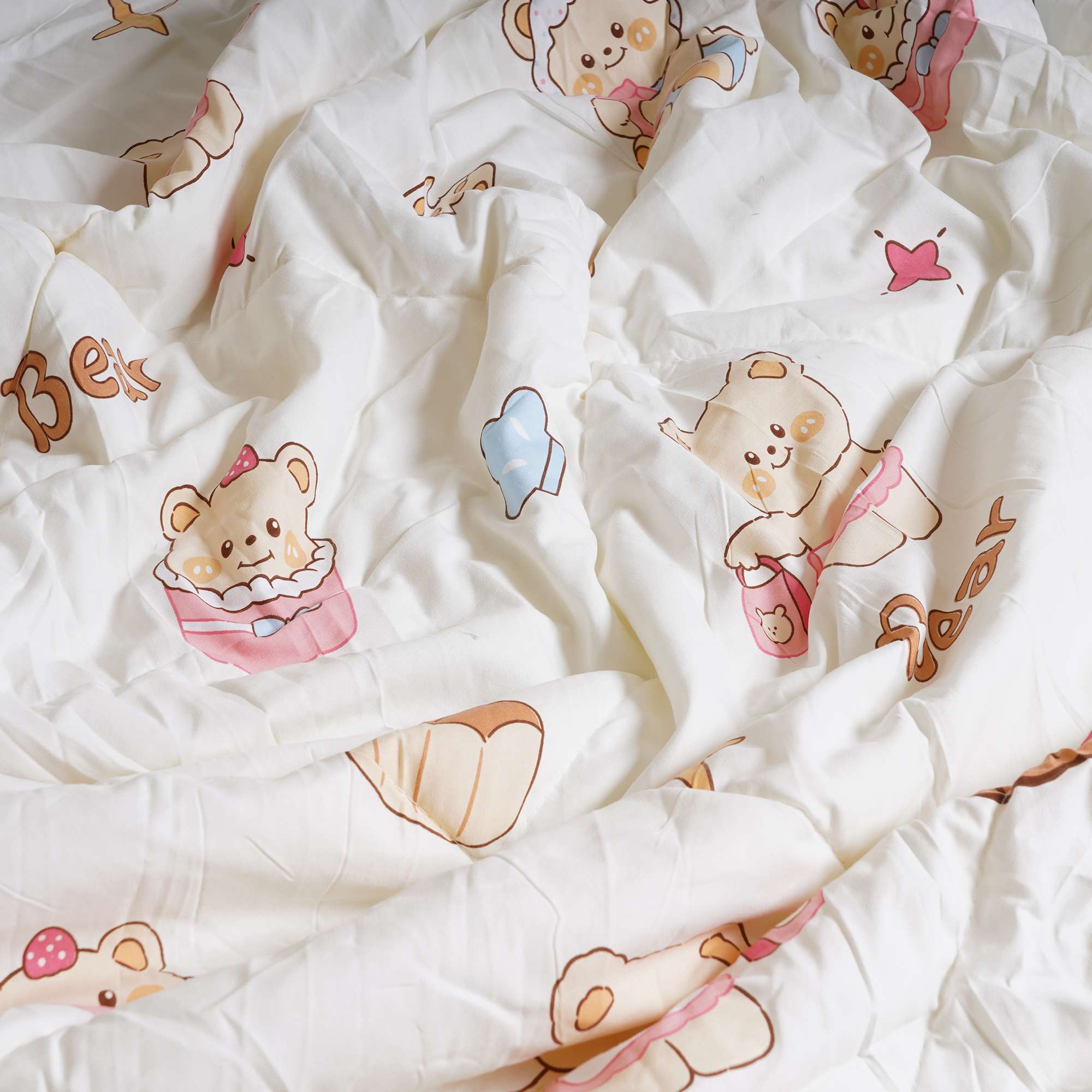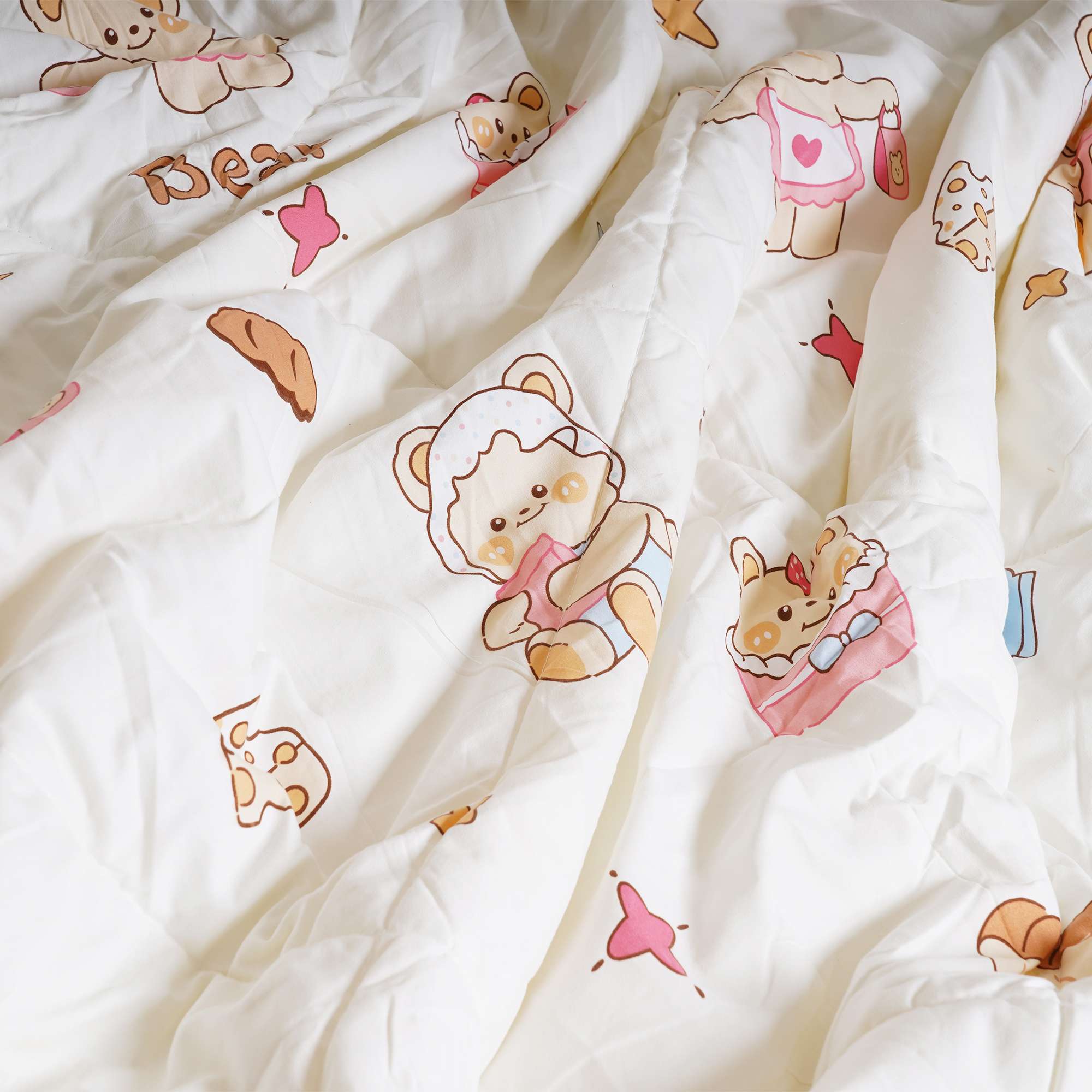 Buttercup Pastel Comforter showcases adorable teddy bear illustrations on a soft cream base with playful accents. Made from smooth, skin-friendly fabric with lightweight quilting, it delivers cozy warmth and cheerful charm—ideal for everyday, all-season use in kids’ bedrooms.