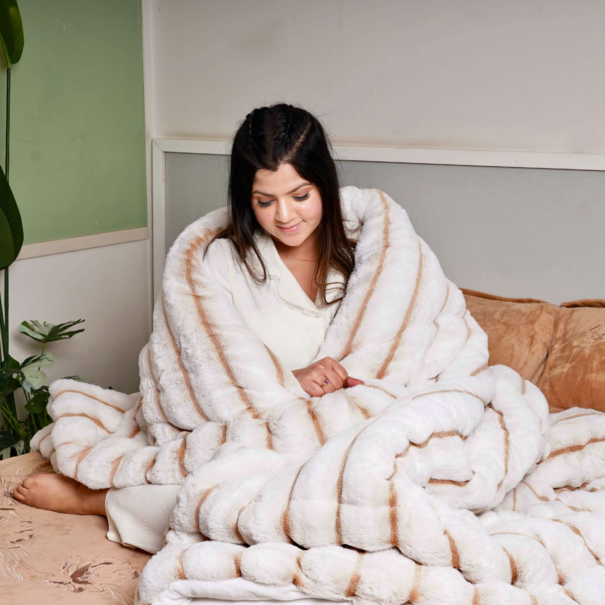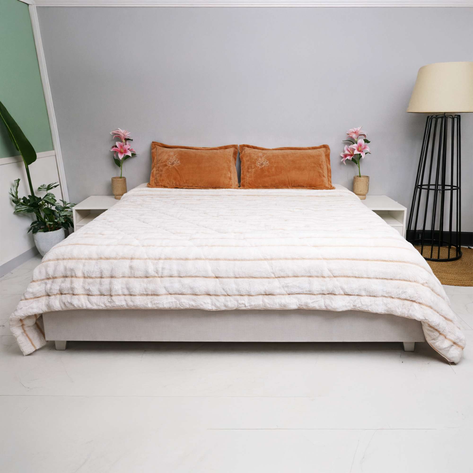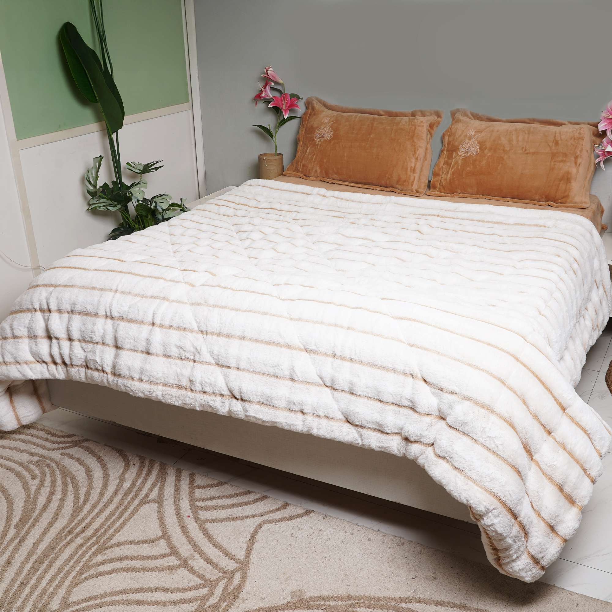 Cloudline Ivory Bed Cover features a plush ivory surface with subtle ribbed detailing. Designed for winter warmth, it offers a cozy, luxurious feel while maintaining a clean, modern aesthetic that drapes beautifully on the bed.