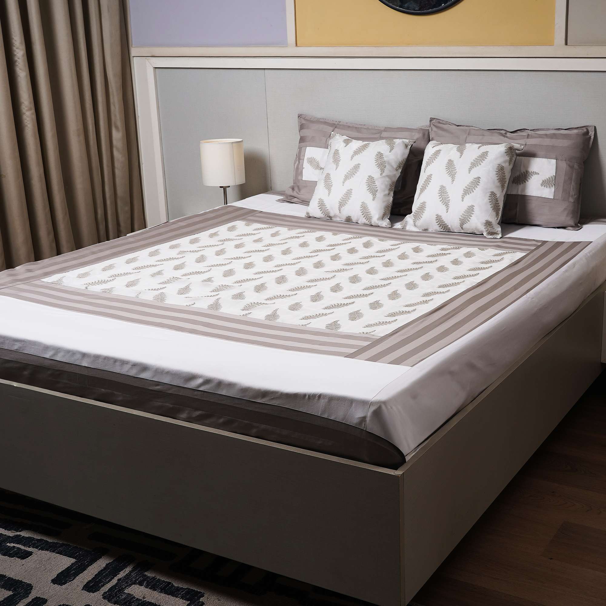 The Ivory Fern Tissue Bedding Set is inspired by nature’s quiet elegance and modern minimalism. Delicate fern embroidery on a soft ivory base creates a calm, refined look, while the lightweight tissue fabric offers breathable comfort with understated luxury.