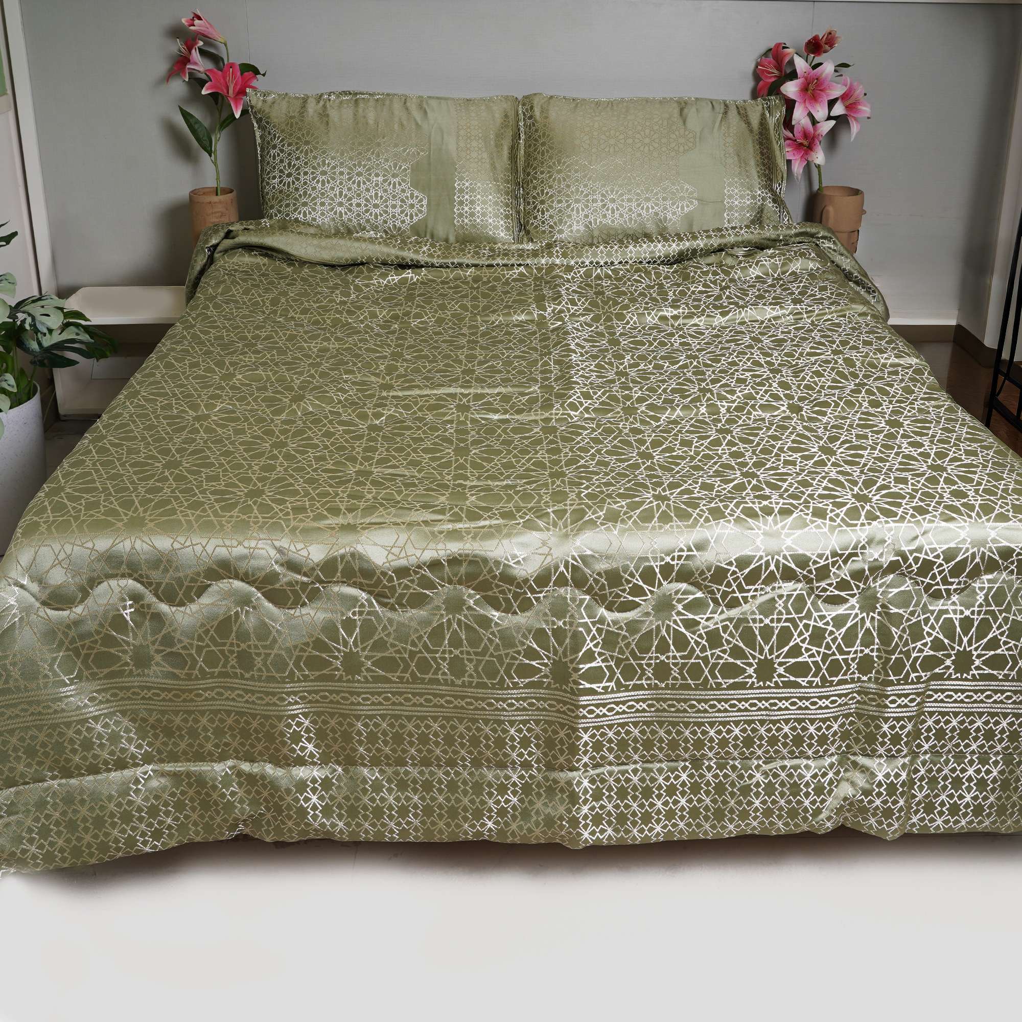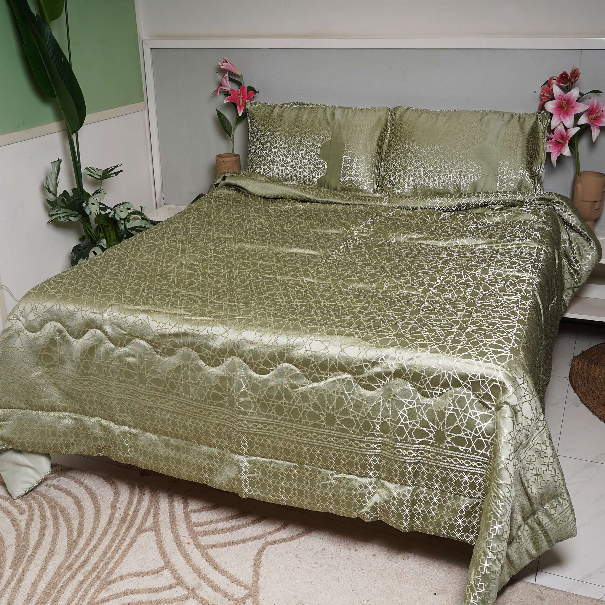 Olive Geo Weave Cotton Set showcases an elegant jacquard weave with a refined geometric pattern. Crafted from premium cotton, it delivers breathable comfort and long-lasting durability, complementing both contemporary and traditional interiors.
