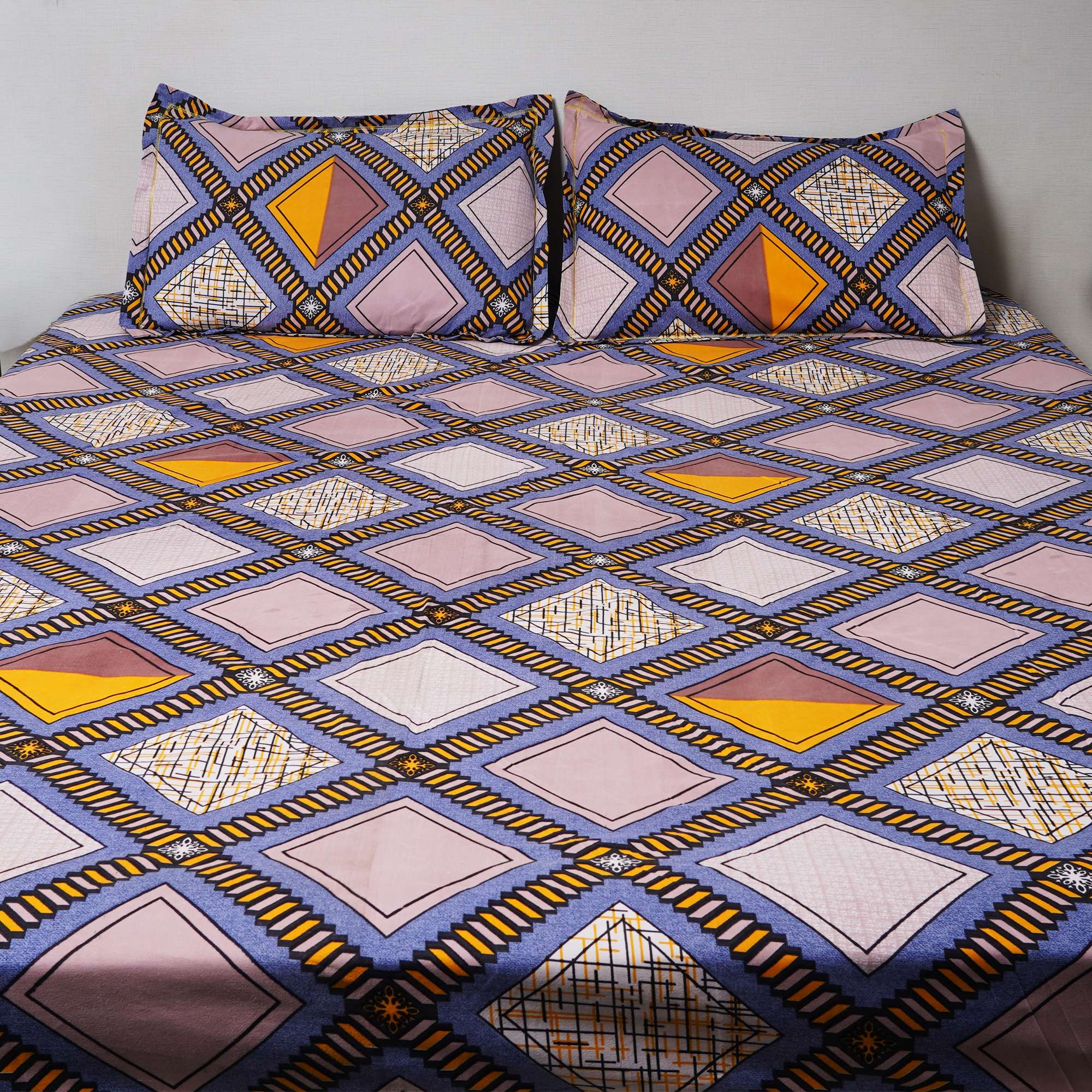Designed with a contemporary grid pattern in cool blue tones accented with blush and mustard, Urban Check brings a modern city-inspired vibe with clean structure and everyday comfort.