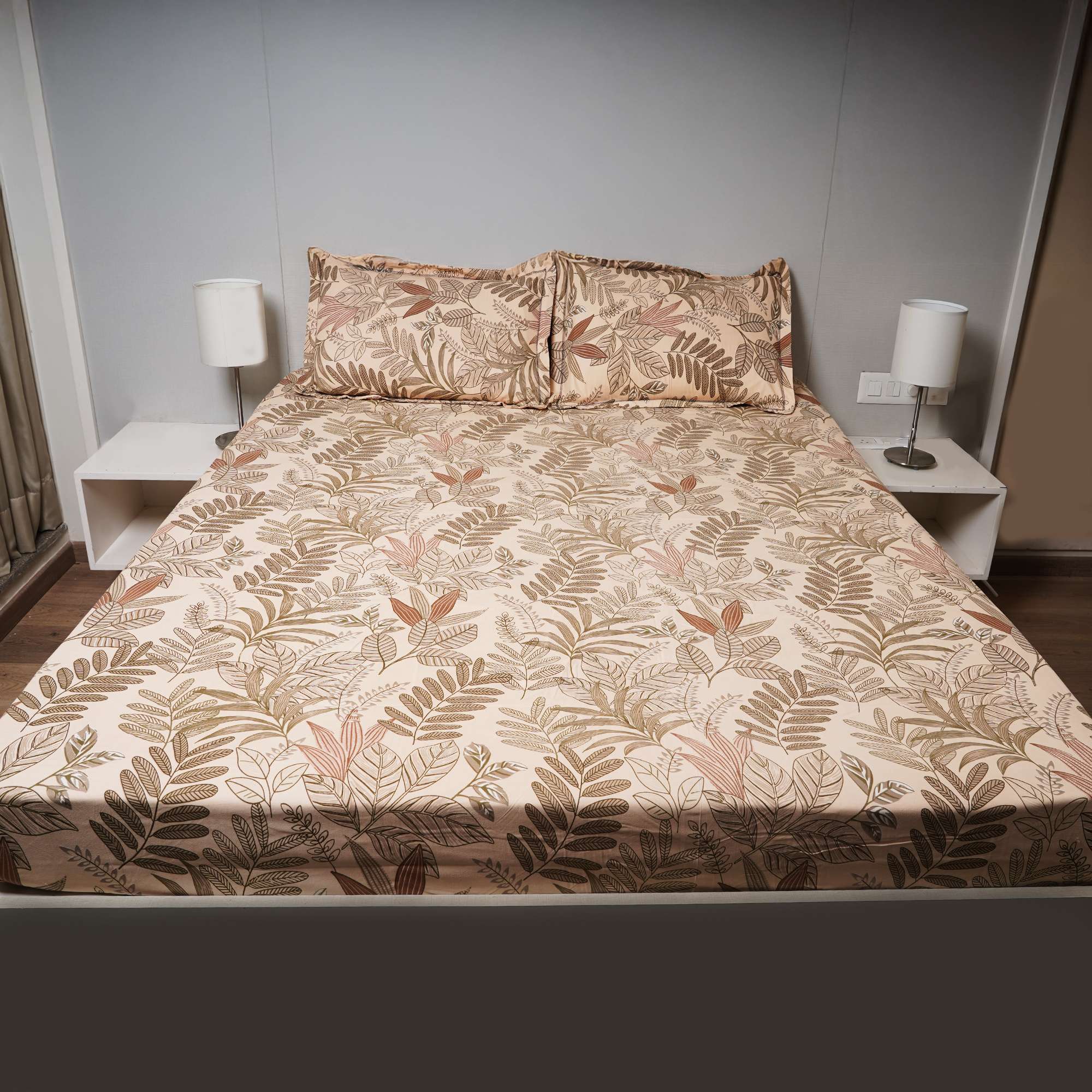 The Whispering Ferns Bedding Set is crafted from 100% pure cotton for breathable comfort and a crisp feel. The striking black-and-white floral print brings modern character, while the fitted sheet ensures a neat, crease-free finish.